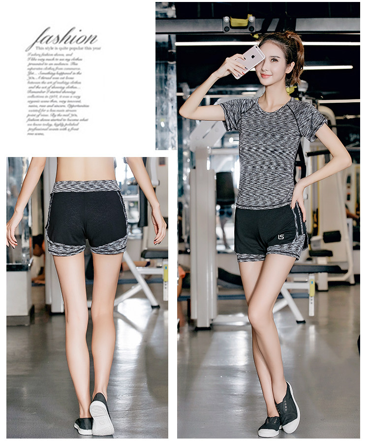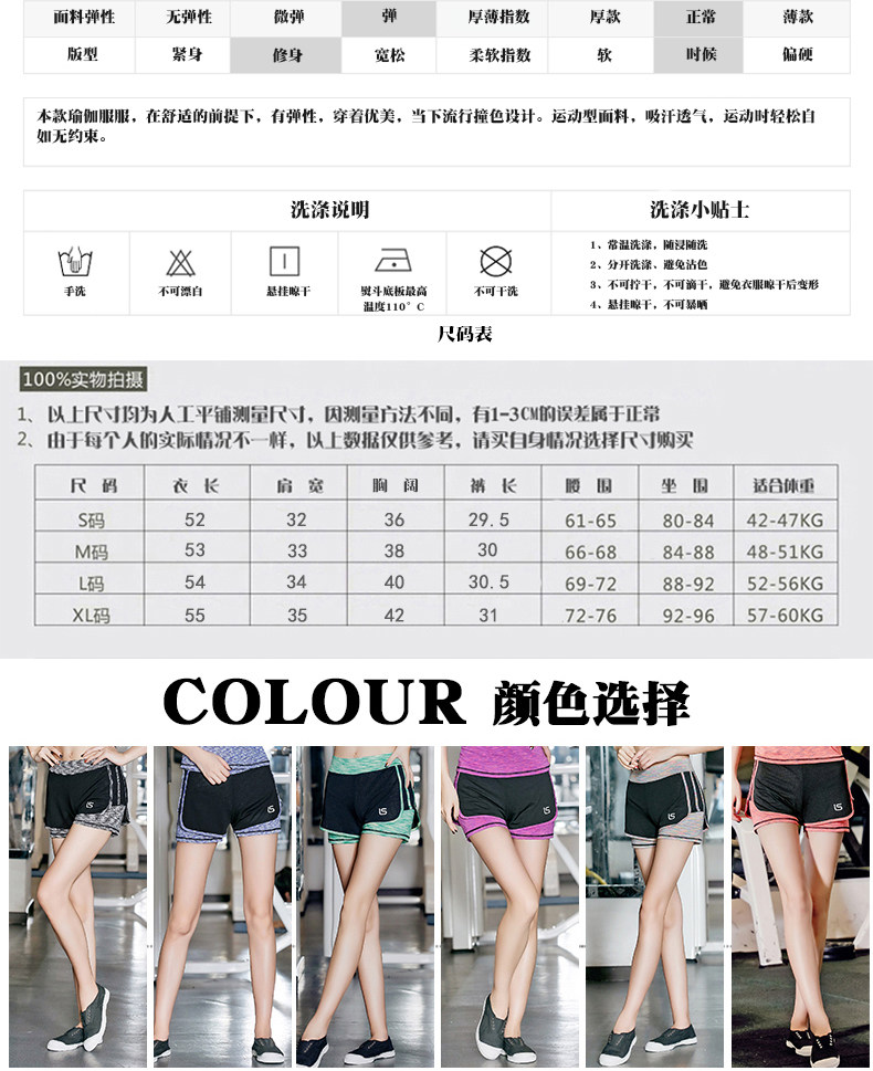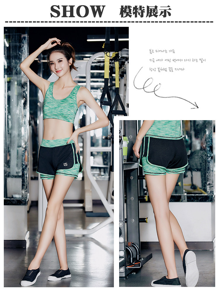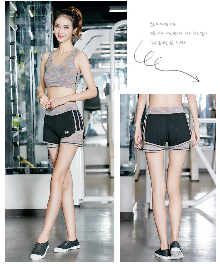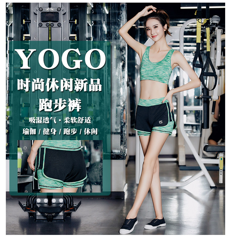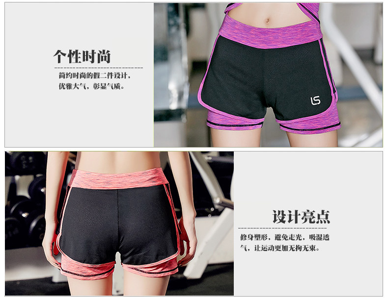 健身房瑜伽裤女假两件跑步紧身短裤