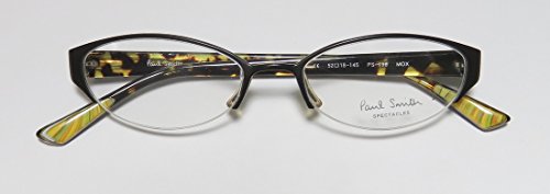 Brand: Paul Smith Style: 196 Gender: womens Frame Type: half-rim Frame Material: metal plastic Case: eleganzo The frame is fully rx-able and can be fitted with prescription and/or tinted lenses at most optical stores. Please note that factory demo lenses have a logo stamped on them in ink. This frame provides comfortable fit and flatters a variety of face shapes. These eyeglasses are made of metal and high quality, durable acetate plastic. Please keep in mind that original case is not included with this frame. However, we will include an Eleganzo hard case at no extra charge to keep your eyeglasses protected. The glasses are made in Japan. These eyeglasses retail for $340.00 at upscale stores that carry designer frames. Save your money and get them here! The pictures cannot fully reflect the beauty of this piece of designer eyewear. These eyeglasses look even more elegant in real life. This is one of the most popular Paul Smith styles on the market right now. 0 |