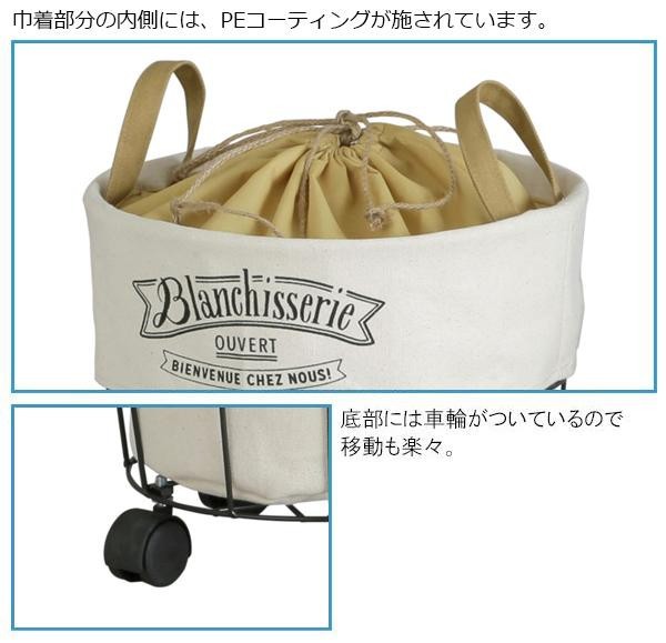 お店で使われるアイテムをイメージしたラウンドカート。厚みのあるキャンバス生地にPEコーティングを施しているので、丈夫で長く使えます。 |