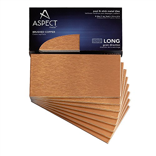 Aspect A52-52 Peel and Stick Backsplash Long Grain Metal Tile for Kitchen and Bathrooms, 3" x 6", Brushed Copper
