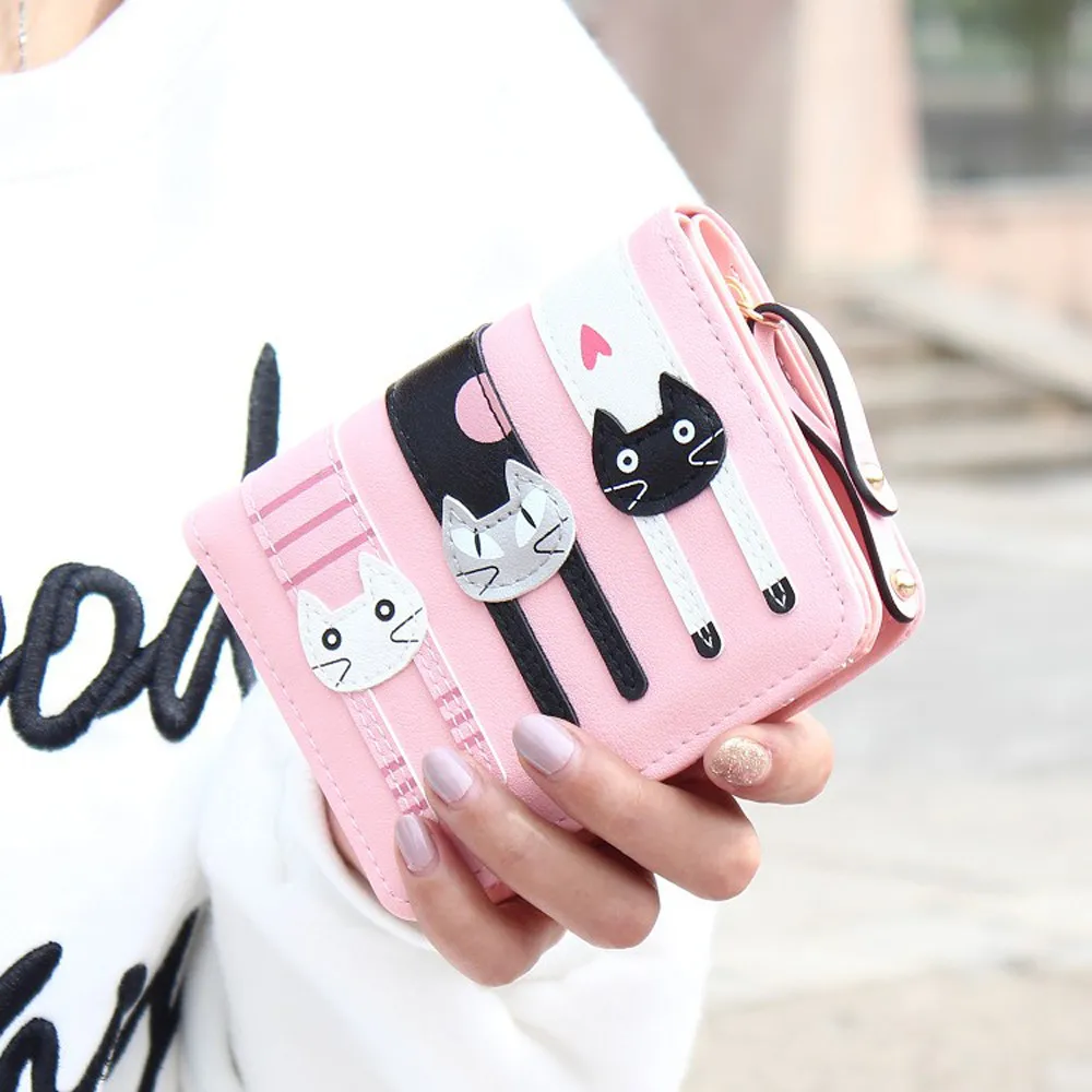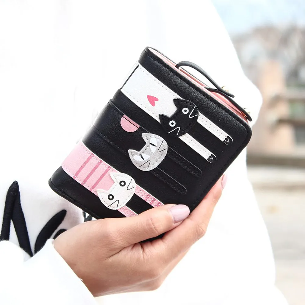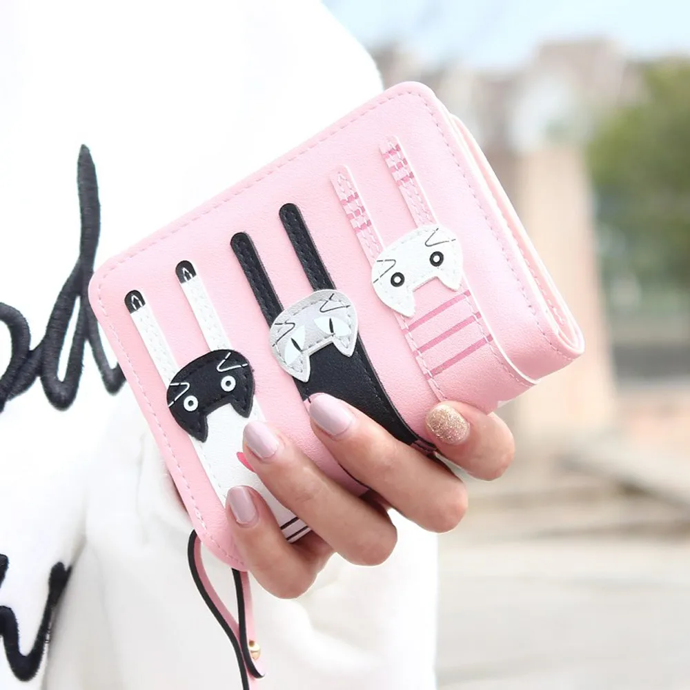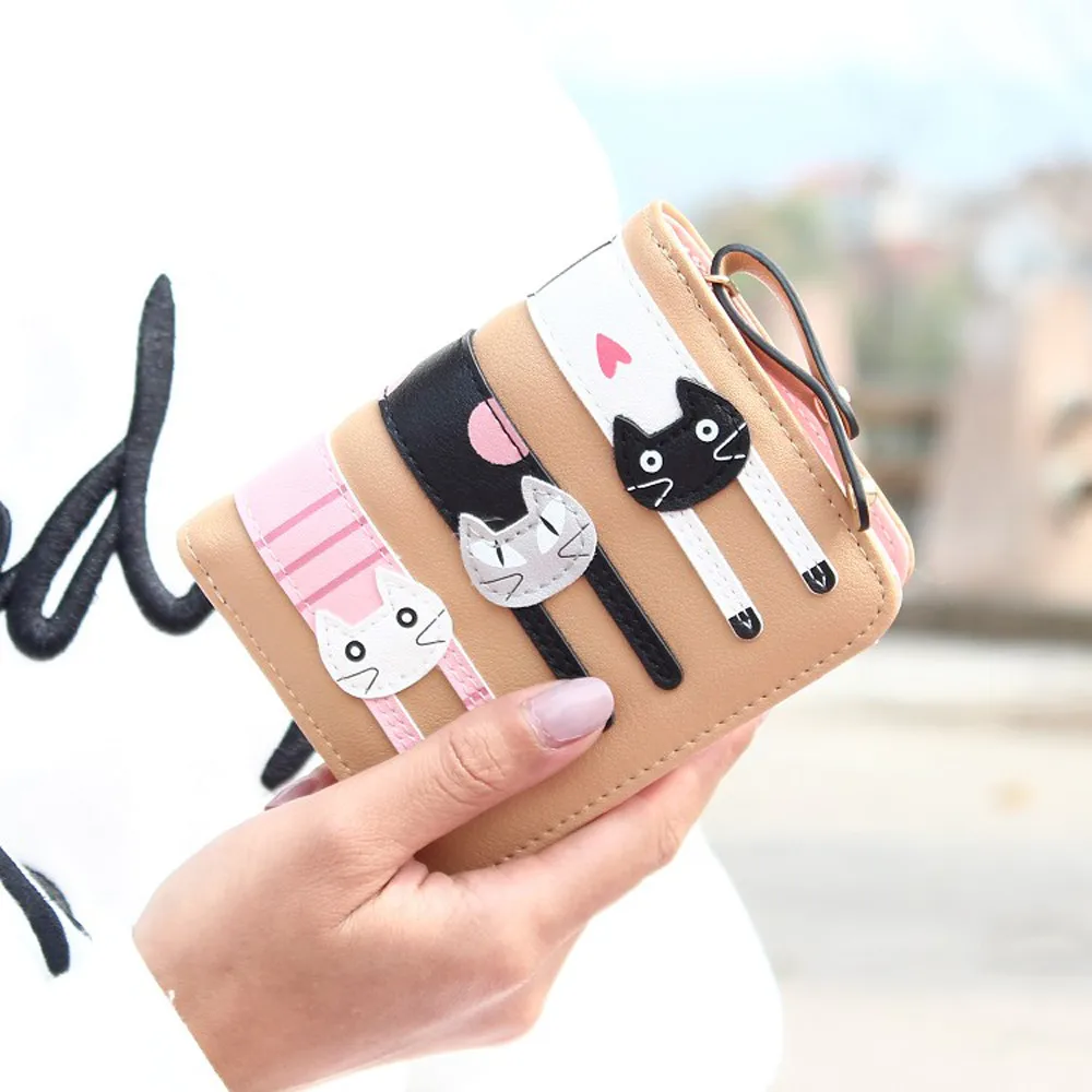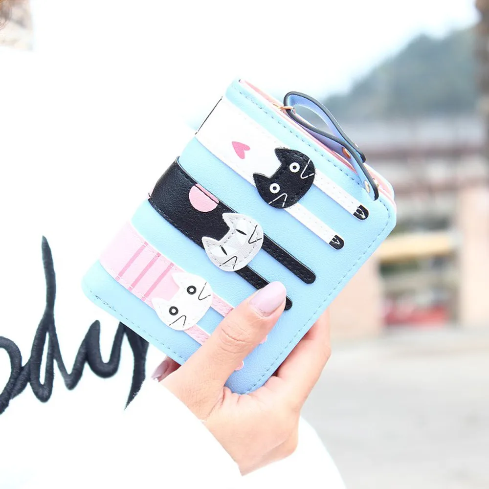Cartoon Cat Purse Female Small wallet:PU leather standard purse wallet