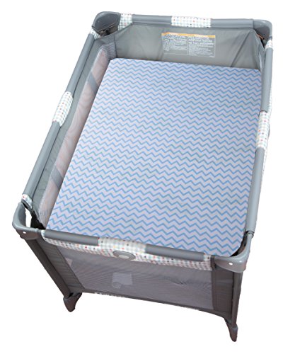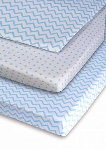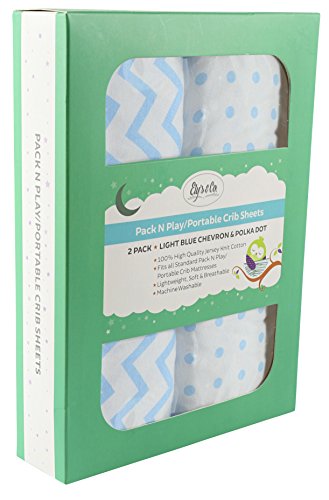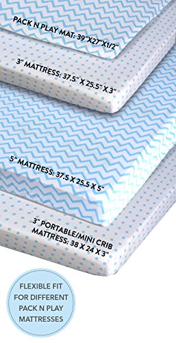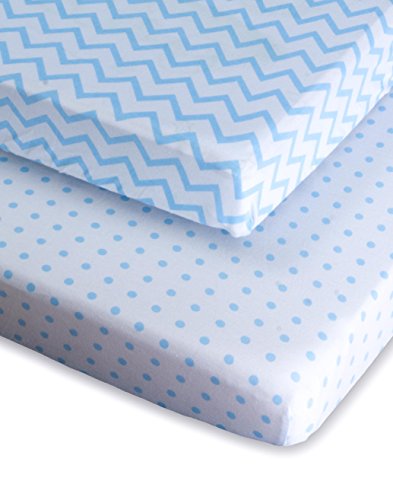 Pack N Play Portable Crib / Mini Crib Sheet Set 100% Jersey Cotton for Baby Boy by Ely's & Co. - Blue Chevron and Polka Dot 2 Pack