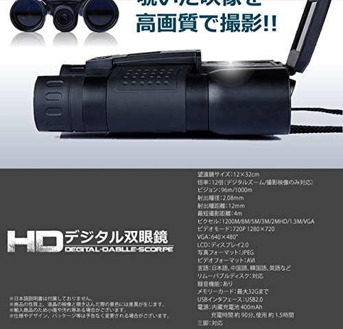원본상품명: 1stモ?ル 【 ハイビジョンHD 】 倍率12倍 デジタル?眼鏡 大迫力 最大32GBメモリ 【 首掛けストラップ付き 】 ST-BD318