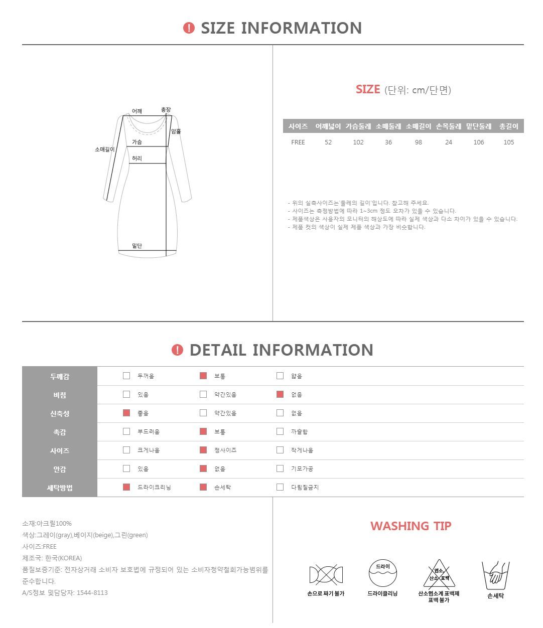 MD COMMENT 간결하고 여성스러운 실루엣으로 우아한 무드를 더해주는 원피스 소개할게요 불필요한 디테일을 없앤 군더더기 없이 깔끔한 디자인에 바디에 자연스레 감기는 라인이 그 자체만으로도 단아한 느낌의 아이템이랍니다:) DETAIL TIP 텐션감이 있는 소재로 상체 라인은 슬림한 라인임에도 불구하고 불편함은 ZERO! 바디에 보다 부드럽게 감겨 피팅 시 은근하게 드러나는 바디 라인이 은은한 섹시함까지 전해드리며 차르르 흐르는 실루엣과 롱한 기장감으로 차분하면서 페미닌한 라인이라 더욱 매력적이에요-! 편안한 이지룩부터 단아한 스타일링까지 다양하게 소화 가능한 아이템이랍니다:D 기본에 충실하면서도 누구나 맵시있고 스타일리시하게 즐기기 좋아 강력 추천드려요-♡ COLOR,SIZE TIP 컬러는 그레이.베이지.그린컬러로 구성되어 있으며, 모델의 착용 컬러는 그린 입니다. 사이즈는 FREE사이즈로 진행되오니 고객님의 체형에 맞게 선택하셔서 예쁘게 착용하시길 바랍니다.