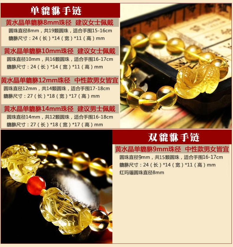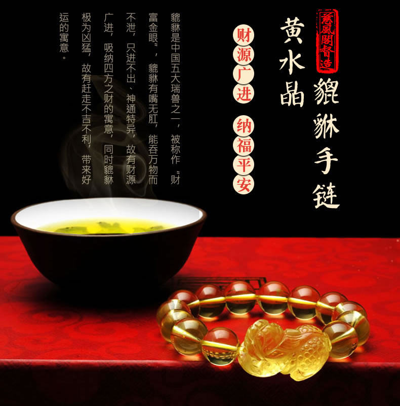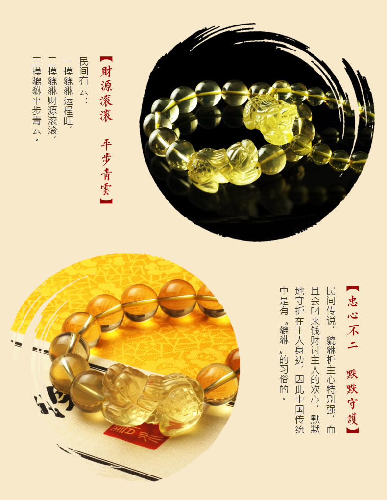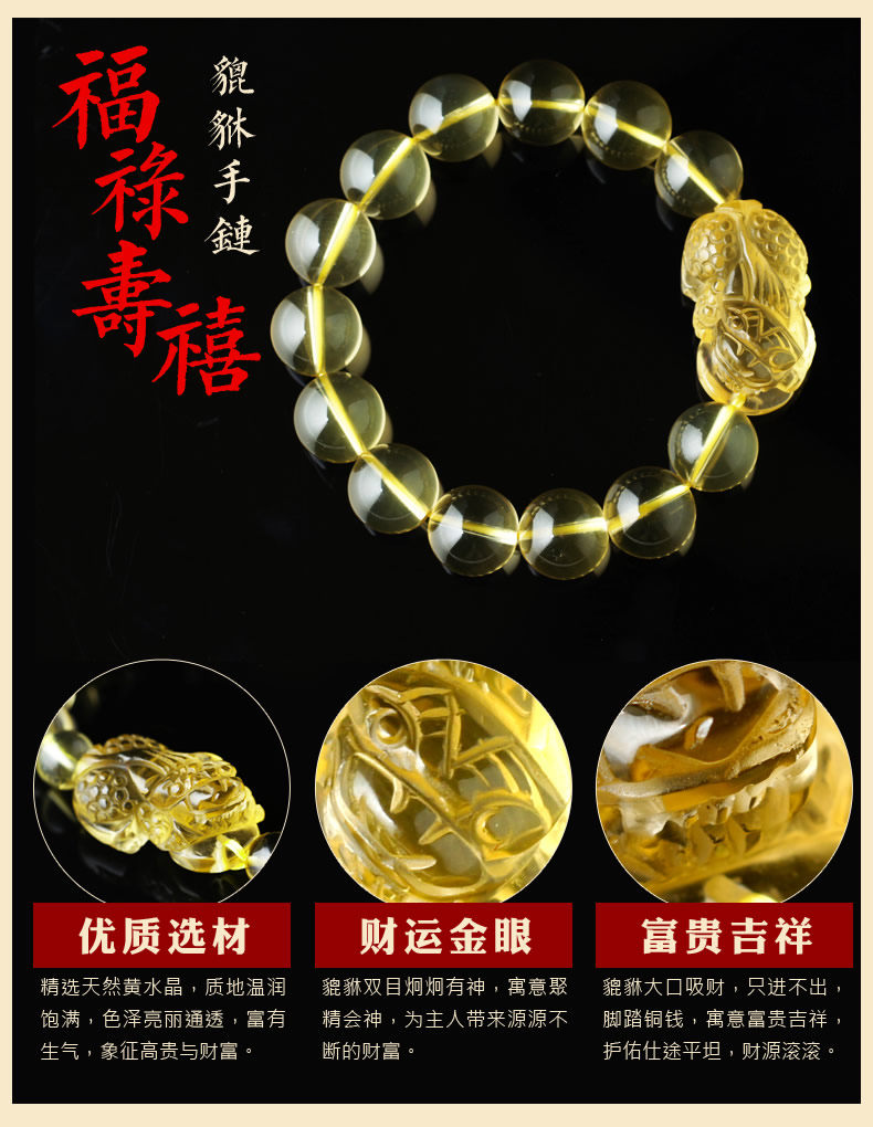 开光天然黄水晶手链招财貔貅水晶男款女士手串情侣饰品首饰