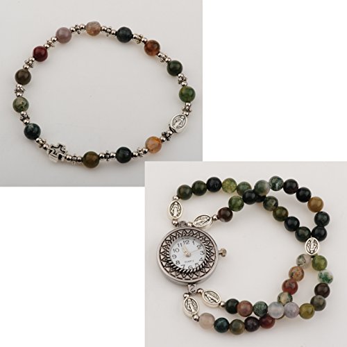 -. Title : McVan 6mm India Agate Bead Rosary Watch Set, Comes in Box