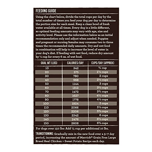 Merrick’s grain free large breed real chicken & sweet potato recipe is specifically designed to cater to the nutritional needs and appetites of large breed dogs. This new grain-free dry recipe starts with real deboned chicken as the First ingredient and features a larger kibble size, leading levels of Glucosamine and Chondroitin + L-Carnitine for a healthy metabolism. Recipes are made in the USA, with no ingredients from China.Feature