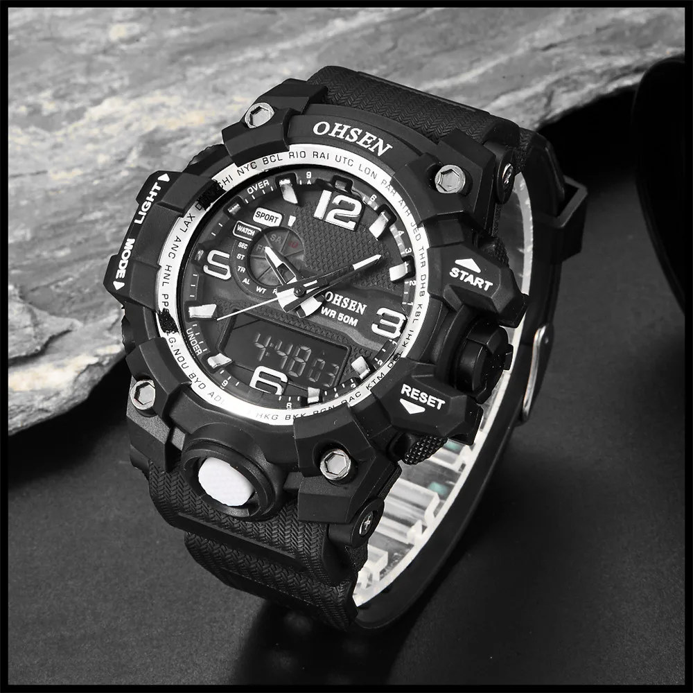 Feature:Water Resistant,LED display,Multiple Time Zone,Stop Watch,Back Light,Complete Calendar,Shock Resistant,Diver,Chronograph,Auto Date,Alarm,Swim