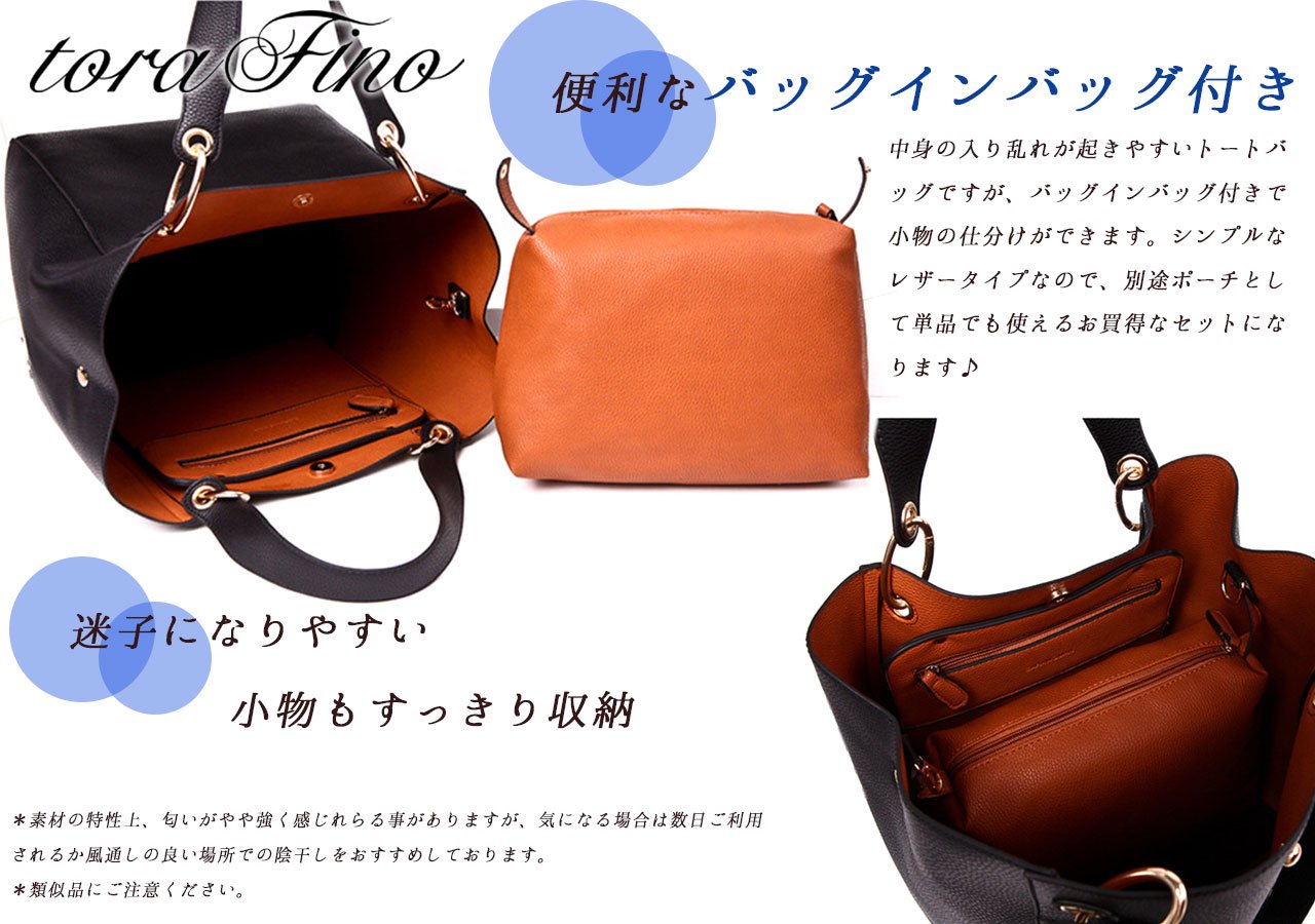 Although it is a tote bag where the contents are likely to be intertwined, small items can be sorted with a bag in bag.