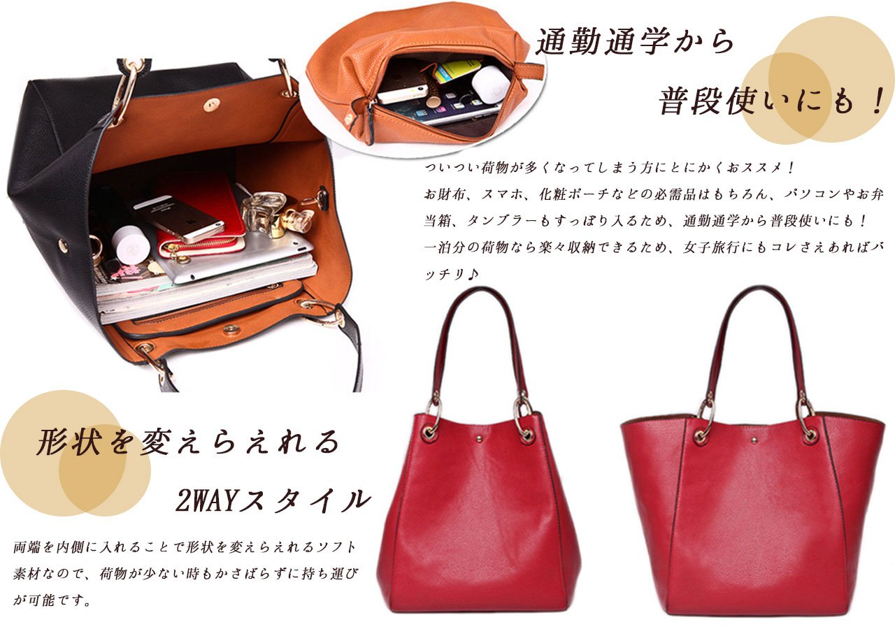 Choose 4col commuter, school, everyday use, large volume PU leather tote bag that can also be used for travel