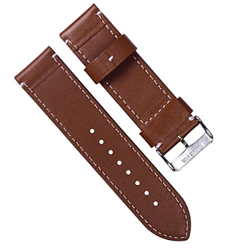 Title : 24mm Vintage Genuine Leather Silver Buckle Watch Strap/Watch Band (White Stitch/Coffee)