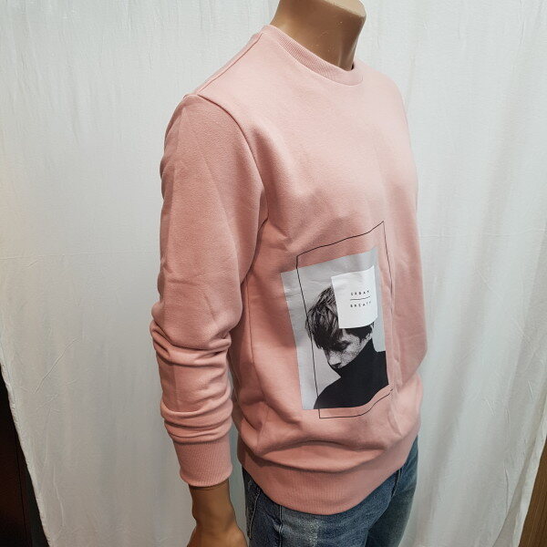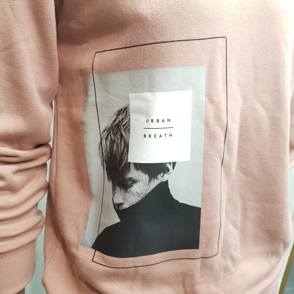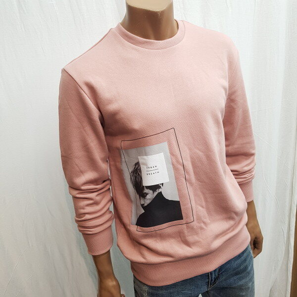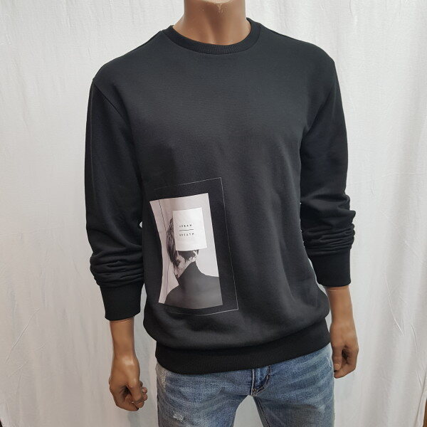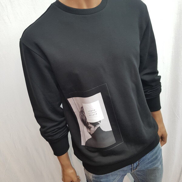 2018년 가을 신상입니다. 베이직한 핏이고 사이드 하단에 인물을 모티브로 한 전사 프린트로 포인트를 준 스타일리쉬한 느낌의 맨투맨 입니다.