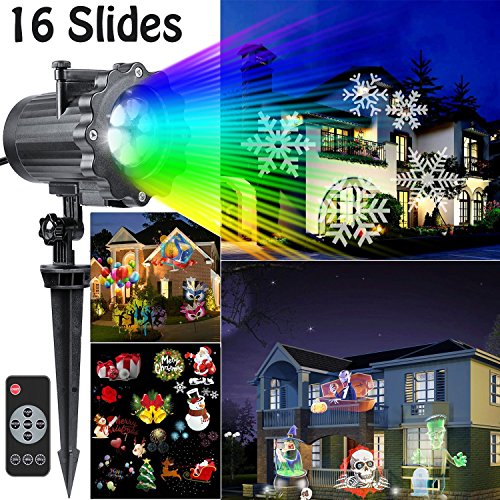 Kyerivs Halloween LED Projector Light with 16 Replaceable Patterns, RF Remote Control, IP65 Waterproof for Decoration Lighting on Christmas Halloween Holiday Party
