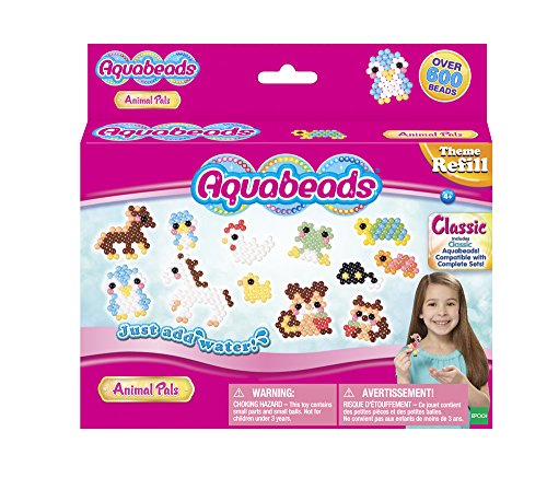 Create cute animal pals. This Theme Refill can be used with any Aqua beads Playset. Select a design template, place layout tray over template and create your design. When done, spray with water and the beads will magically stick together. This set contains over 600 classic beads in 9 colors, 4 design templates, and instructions. Does not include layout tray, bead pen or sprayer.Feature