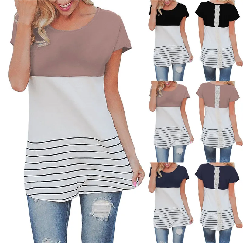 Pattern Type:Striped/Patchwork Preppy style funny T Shirts Women