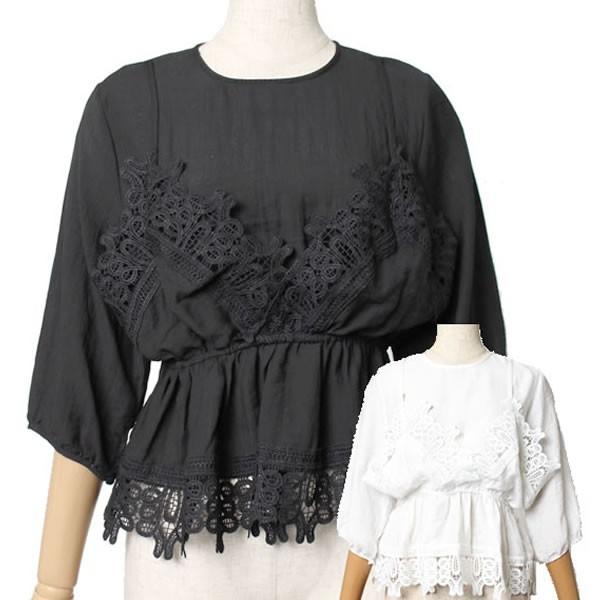 | 重ね着風 クロシェレース キャミソール カットソー トップス レディース 黒 ブラック ホワイト 無地 【クロシェレース トップス 体型カバー レディース 女性 黒 ブラック ロンデルブラック ナチュラル カットソー 】 | |
