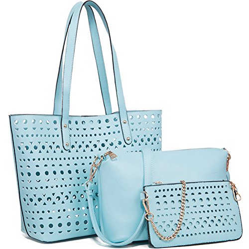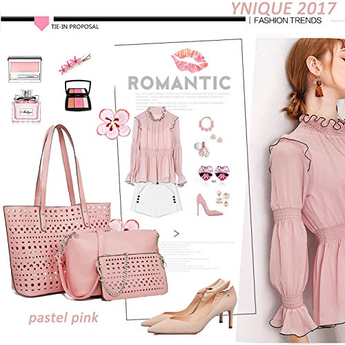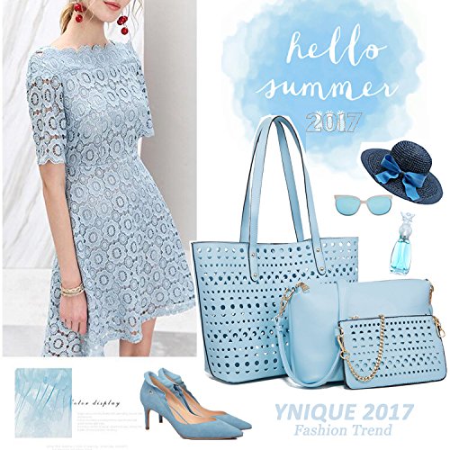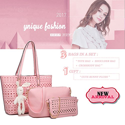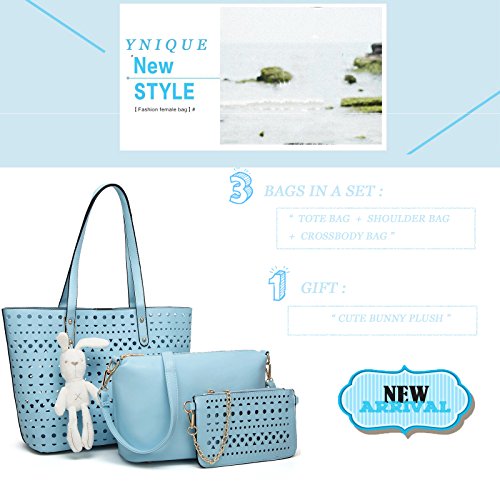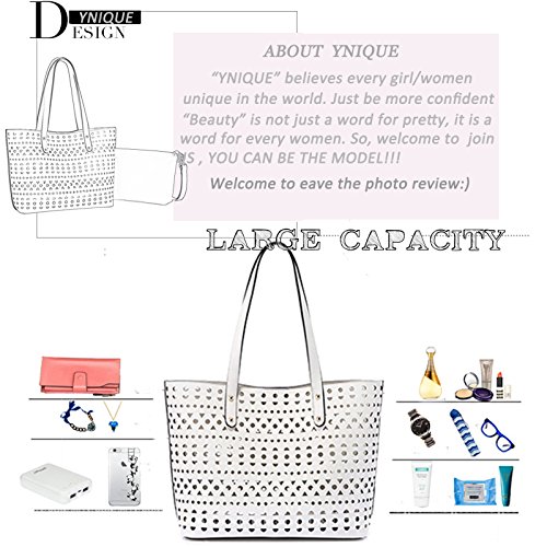 -. Brand : YNIQUE -. Department : womens -. Feature : MATERIAL: Hollow Out Quality PU Leather,no odd smell Texture:Hollow Out / CLOSURE: Top Magnetic Snap Closure / DIMENSIONS: 12.7"W x 11.1"H x 5.5"D, Handle Drop: 9.9 inches / POCKETS: 6 pockets(2 large compartments + 2 interior pockets in the small pockets & 1 zipper pocket in the midium bag, 1 pocket in the small purse/wallet ) / Buy 1 get 4!!! The package including: a YNIQUE Non-WOVEN dust bag + a midium crossbody bag with adjustable shoudler strap + a small purse/wallet with gold-tone chain shoulder strap + a cute plush bunny -. ProductGroup : Shoes -. ProductTypeName : HANDBAG -. Title : YNIQUE Women Summer Handbags Shoulder Bag Top Handle Purses Designer Tote Bag 3 Bags Set