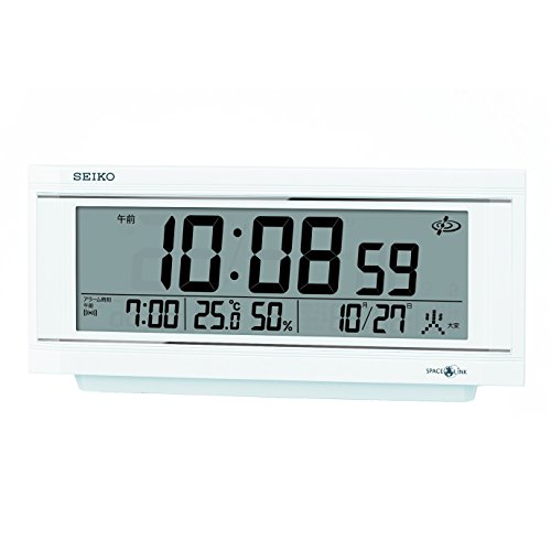 -. Title : セイコー クロック 置き時計 衛星 電波 デジタル カレンダー 温度 湿度 表示 アラーム ライトつき SPACE LINK スペースリンク 白 パール GP501W SEIKO