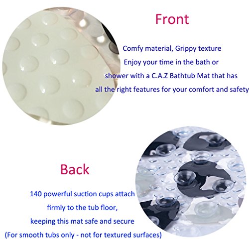 - FOR SMOOTH BATHTUB FLOORS ONLY - NOT for textured surfaces. SAFETY FIRST: The best slip-resistant bathtub mat - will keep you, your children, the elderly and disabled safe when bathing and showering. 140 powerful suction cups - will not slip when used on non-textured shower or tub surface. 14.96*27.16 inches,universal size which is suitable for standard size bath tubs and showers. Perfect for all homes, nurseries and hospitals