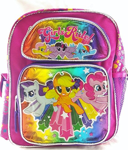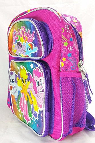 -. Brand : FAB -. Color : PINK -. Department : girls -. EAN : 0641427627472 -. Feature : Officially Licensed / Two Front pockets with zipper closure / One side vecro-closure flap pocket and one side meshed pocket / Adjustable padded shoulder straps / Measures around : 12"H x 9"W x 5"D -. Label : Ruz -. Manufacturer : Ruz -. Model : my little pony -. MPN : 139357-2 -. NumberOfItems : 1 -. PackageQuantity : 1 -. PartNumber : 139357-2 -. ProductGroup : Toy -. ProductTypeName : LAGE -. Publisher : Ruz -. Size : SMALL -. Studio : Ruz -. Title : Hasbro My Little Pony Girls 12" Canvas Pink & Purple School Backpack Girls Rule! -. UPC : 641427627472