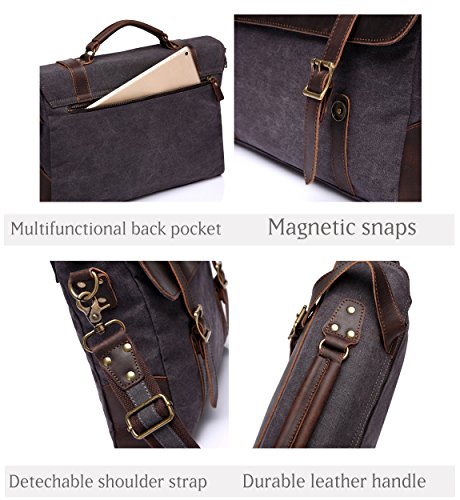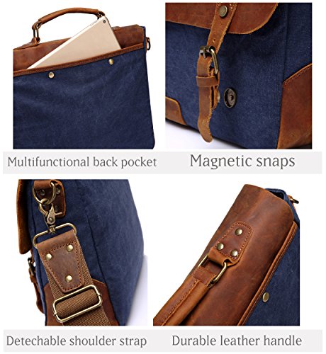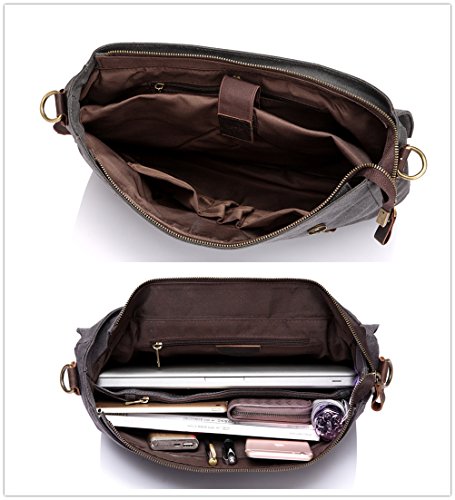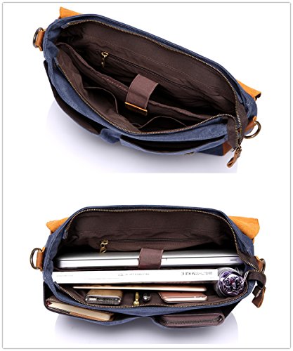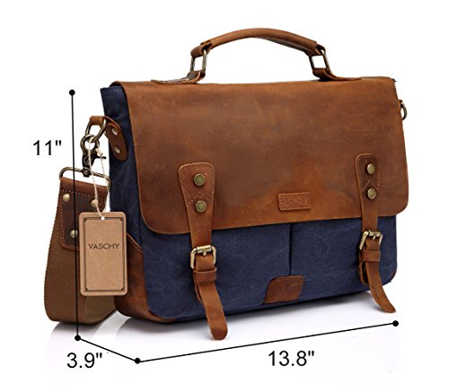 -. Title : Vaschy Casual Genuine Leather Canvas Messenger Bag 14 inch Laptop Shoulder Bag Bookbag