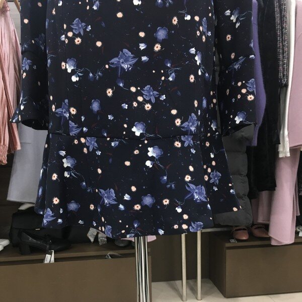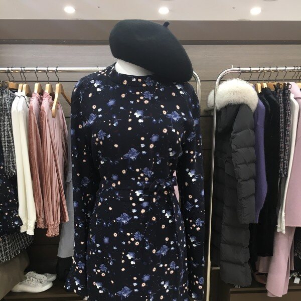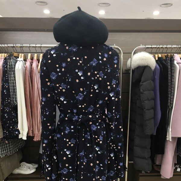네크라인이 목을 살짝 덮어 올라와 아우터 매치에도 편합니다. 허리라인을 잡아주는 끈이 있어 더욱 잘록해 보이게 합니다. 플레어 라인 덕분에 힙과 허벅지의 군살이 커버된답니다.