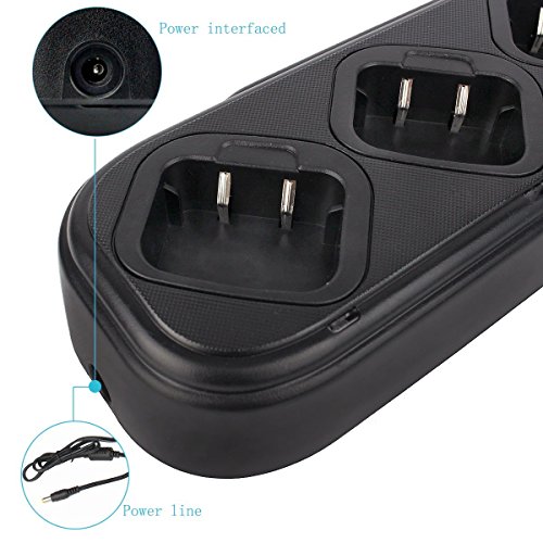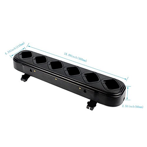 Specifications Weight: 28.29oz(802g) Dimension: 18.89 x 4.34 x 2.56inch(480 x 110 x 66mm) AC/DC Adaptor Weight: 6.77oz/192g Input: 100-240V~50/60Hz 0.8A Output: 13.2V-3.0A Universal Rapid Charger Input: 15V-3A Output(Li-lon 2xCells): 8.7V-500mA Output(Ni-MH 6xCells): 9.4V-500mA Output(Li-lon 1xCells): 4.2V-500mA Hot Spots: Heavy duty durable design of poly-carbonate plastic The charger socket can be hung on the wall to save space. Capable of controlling the charging process to ensure high efficiency Securing the charging process with multiple protection solutions Compatible with H-777/Baofeng BF-888s 2 Way Radio Package Includes: 1 x TIDRADIO Six-way Charger 1 x AC Adapter 0
