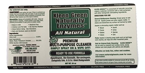 -. Feature : Our revolutionary formula is designed to assist in removing and eliminating dirt, germs, bacteria, odors and pests including bed bugs, lice, scabies, crabs, fleas, mites and more, naturally! / Kleen Green is non-toxic, chemical-free, biodegradable, all-organic and hypoallergenic. / Kleen Green penetrates and lsifies all types of grease and organic matter on all surfaces. / It is an environmentally-friendly alternative to harsh cleaning chemicals and is highly effective for cleaning all surfaces. / As a pest control product, Kleen Green works better, quicker and safer than dangerous, synthetic pesticide poisons.