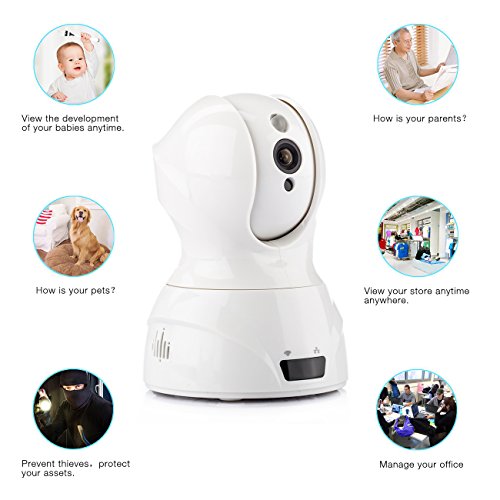 -. Feature : Support Android /iOS system mobile devices, remote real-time monitoring. The high definition image and 8 times digital zoon present all details clearly. / Infrared night vision lighting (IR distance: 15 meters), 24 hours day and night monitoring, IR-CUT switch. You can also control the camera by sliding the smartphone screen to make the camera rotate 350°horizontally and 100°vertically. / Support real-time Hi-Fi two way audio intercoms with high quality sound effect. Smart motion detection: It can send the notification to Mipc APP when abnormal activity detected in the image. / Support multiple users simultaneously view on one camera clearly and smoothly. Support micro SD card (max 64 GB) storage, cloud box and cloud storage. / Easy installation and set-up, plug and play. Image sensor:1/4""color CMOS sensor(H42). Display resolution:1280x720 (1MP).