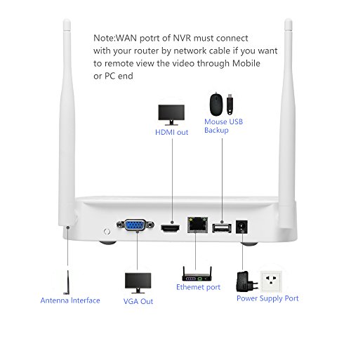 -. Feature : 【Plug&Play】No need to Run Cables from Cameras to NVR.Just Plug the Wireless Security Camera System into Power Outlets with Power Supply Provided(8*12V/1A for cameras;1*12V/2A for NVR), and Connect NVR to PC/TV Monitor with VGA/HDMI Cable.True Plug and Play. / 【Remote View】Need Connect NVR to Router with Network Cable for Viewing your Wireless Security System,before you Download Free APP (IP-PRO) for Iphone,(Eseecloud) or (Eseenet+) for Android phone, pls Make Sure Cloud ID is Online and Network Status is Healthy.Then Register an Account to log in APP and Add Device by Cloud ID to Remote View on your Mobile Device via Wifi or 3G/4G at anytime and anywhere. / 【960P NVR/960P Waterproof Camera】 Wireless Camera System Gets a Sharp and Crisp Image Day or Night with the Camera's automatic IR-Cut filter. Up to 65ft night vision. IP 66 Weatherproof Housing, Cameras can be Used Indoors and Outdoors. / 【Motion Detection】Security Camera System Will Be Notified when there are Unexpected Movements. Smart Notifications will be Pushed to your Smartphone via iPhone/Android App. And you won't miss Any Moment with Remote and Local Playback. / 【Professional Customer Support】Wireless Security Camera System with 60-Day Money Back Guarantee,Two Year Warranty and Free Life Time Tech Support,Email:safevantservice@hotmail.com,Toll Free 18662622888.
