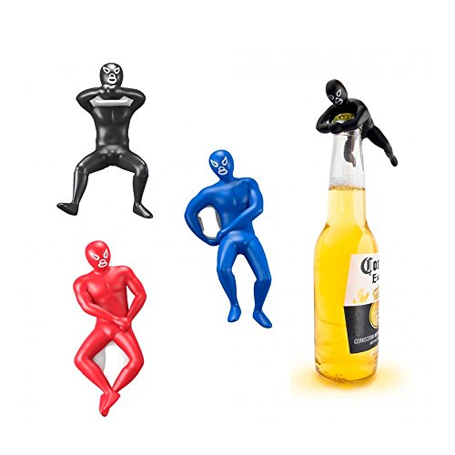 -. Title : Luchador Bottle Opener Beer Cap Metal Ring Rare Novelty Gift In Black Kikkerland