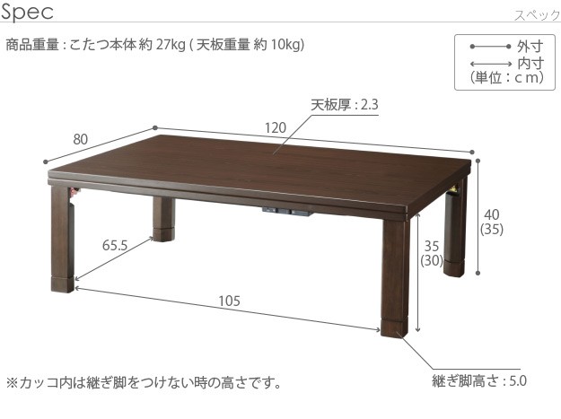 幅120x奥行80x高さ35/40cm(継脚5cm)