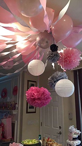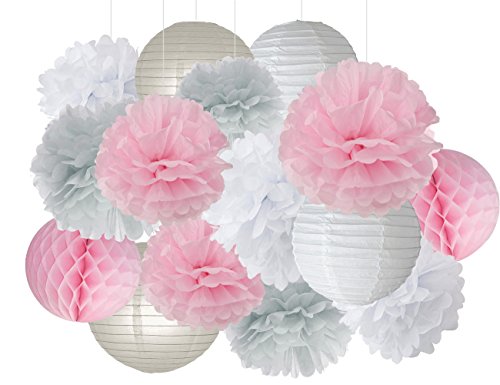 Studio : Furuix Publisher : Furuix Binding : Toy Product Description This kit is the perfect hanging party decor for a princess themed birthday party or baby shower - or any pink and white grey party. KIT INCLUDES (12PIECES):4pcs paper lanterns of 8 inch in diameter:2*white 2*grey;2pcs 8inch pink honeycomb balls;9pcs tissue paper pompom:3*white 3*pink 3*grey;Each color comes with 3 sizes:1pcs 8inch 1pcs 10inch 1pcs 12inch. Give a special touch to your next party with this darling combination of hand-made tissue paper pom poms, honeycomb tissue balls and paper lanterns. 0