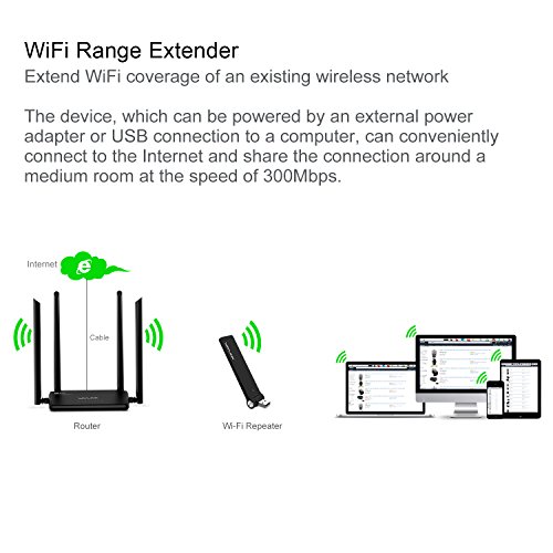Improve The Signal Strength Built-in 2 x Antennas,delivering WiFi up to 300Mbps. Resolve the problem with a weak signal in an excellent manner. With Wifi Range Extender function,watching HD video or movie in bedroom or garden will not be a big problem any more.