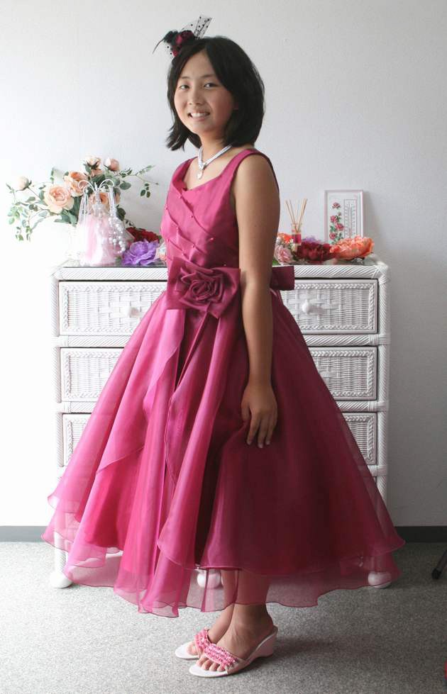 | フレアスカートのラインが美しいドレスです。 画像の商品はロングパニエを着用し、よりボリュームのあるスカートにしています。 結婚式や発表会にどうぞ♪ |