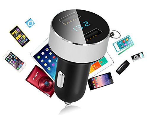 Actpe 2 Port 3.1A Dual USB Rapid Car Charger, Cigarette Lighter Voltmeter with LED display & Car's Battery for iPhone iPad iPod, Samsung Motorola LG Sony Pixel Nexus Huawei Android Cell Phone/ Tablet