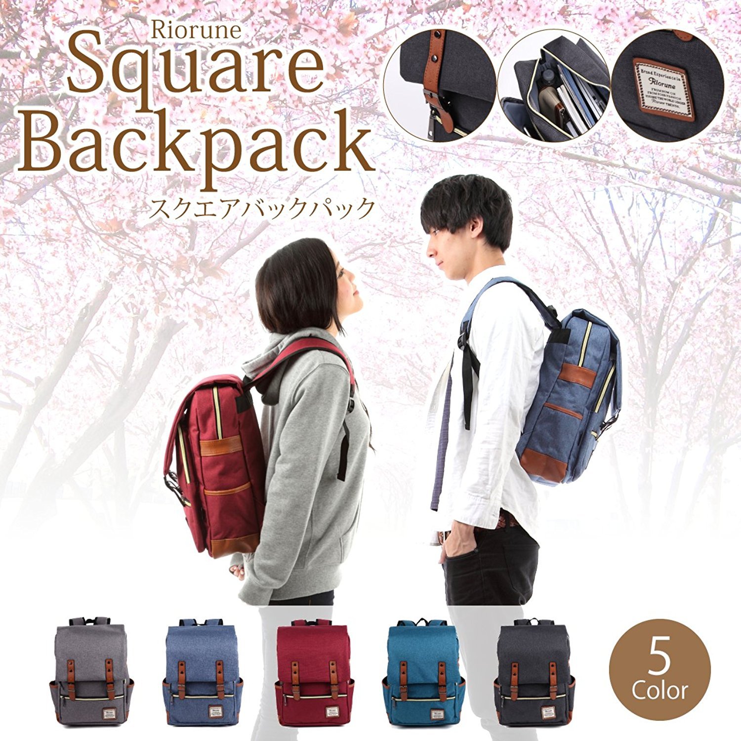 All five color casual backpack.