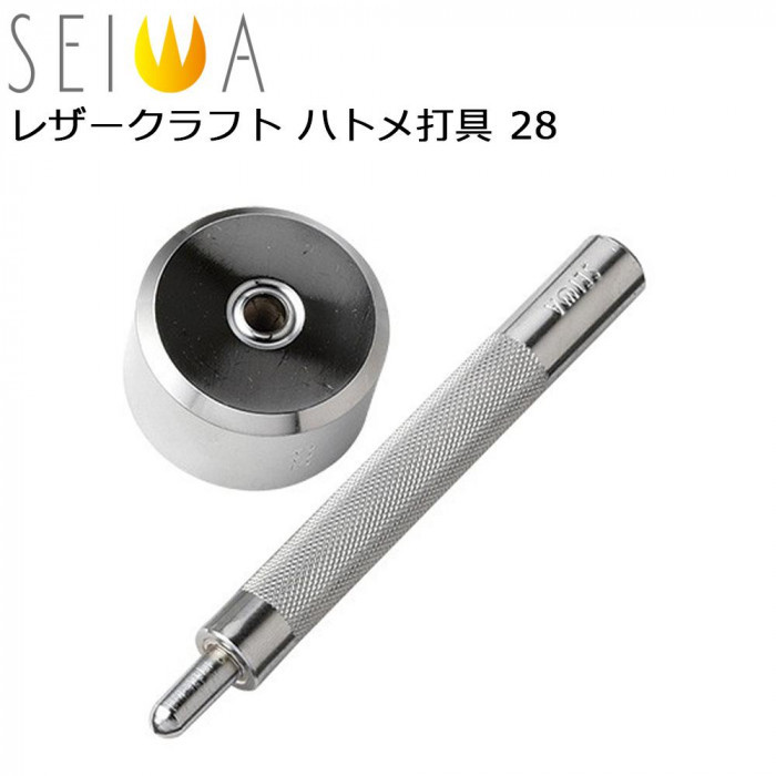 革に開けた穴を補強するハトメの取り付けに使います。先にハトメ抜きで革に穴を開けてからお使いください。 製造国:日本 素材・材質:鉄 仕様:使用するハトメ抜きのサイズ:40号(12mm) セット内容:打棒×1、打台×1 ※サプライヤー直送品 ご注文後7~8営業日後の出荷となります【商品名】誠和(SEIWA/セイワ) レザークラフト ハトメ打具 28