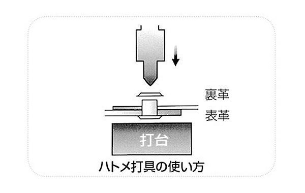 革に開けた穴を補強するハトメの取り付けに使います。先にハトメ抜きで革に穴を開けてからお使いください。