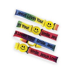 Nylon "Smile! Jesus Loves You!" Friendship Bracelets. Each with a plastic smile face clasp. 7 1/2"