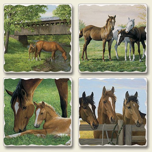 - Assorted 4-coaster set - a different image/design on each one. Made in the U.S.A.