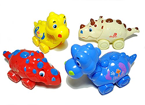 -. Title : Dinosaur Toys with Push and Go Friction Powered Wheels-Blue, Red, Yellow, White-Set of 4
