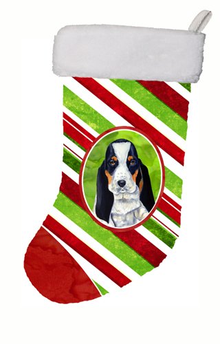 Caroline's Treasures LH9239-CS Basset Hound Candy Cane Holiday Christmas Stocking, 11 x 18", Multicolor
