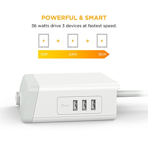Title : EasyAcc Multiple USB Charger 7.2 A 3 Ports Desktop USB Charging Station with 2 Surge Protected Outlets and 5ft Durable Cord Power Strip