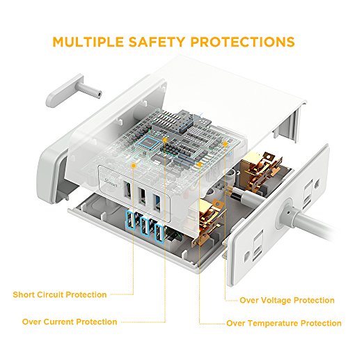 Feature : Multi-Device Charging: 2 AC outlets (with child safety lock) and 3 USB charging ports,making it great for multi-environment households. / Fast Charging: 7.2 A 3-port smart USB allow auto-detect, self-adjust current control, and charge different USB devices at their maximum speed without any compatibility issue. / 2 AC Outlets: Easy access to power without having to crawl under the desk. Enable you to charge computers, laptops, speakers and other devices with AC input simultaneously. / Safety and durable: Surge protector safely protect your devices from lightning, surging, overcharge, overcurrent, short-circuit. 5ft UL listed power cord enable to handle 16A circuit. / What You Get: EasyAcc Desktop USB Power Strip, User Manual and outstanding customer service with 18 months warranty.