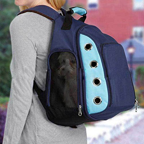 -. Feature : Durable and Ventilative Material: Made of 600D waterproof oxford cloth and breathable mesh, supply your pet a more safe and healthy space / Front side zips open into an optional mesh tent area, keep your pet comfortable and secure / Sturdy construction to keep your pet safe; Mesh side door for added ventilation; 2 Storage pockets for treats, meds or other else / Adjustable padded shoulder straps and carrying handle help to reduce the burden, keeps the backpack stable / Size: 5.5" x 16.9"x 16.5"(14*43*42cm), fits for small pets weight up to 5kg(10lb); Compliant with most Airlines(Please check with your specific airline carry-on size restriction)