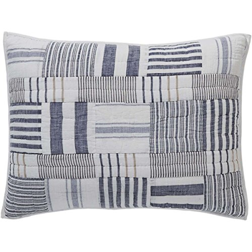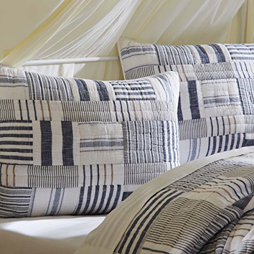 - Stitch in the ditch, echo, and channel hand-quilting on textured cotton slub fabric block layout in various nautical-inspired plaids