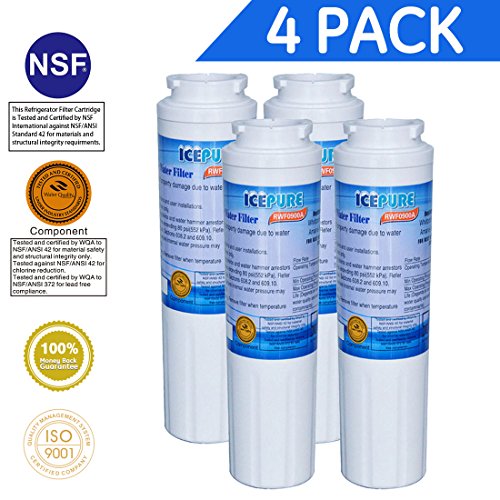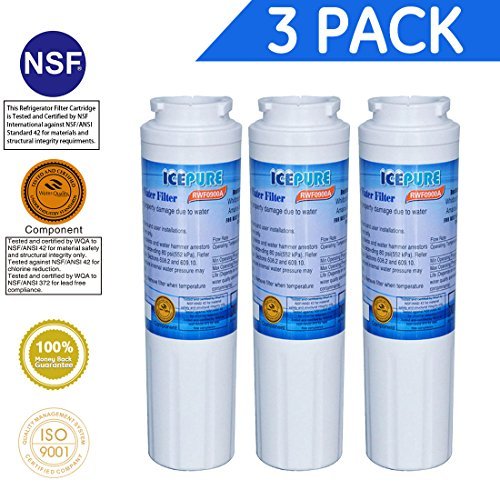 IcePure Water Filter, Compatible with Maytag, Amana, Kenmore, Jenn-Air, Whirlpool, Kitchenaid models, 1 pack The RFC0900A is a compatible replacement for the following refrigerator filters: Replaces Maytag: 12589201 4396395 67003591 12589203 67003727 12589206 12589208 13040210 67002671 67003526 67006464 67006467 67006474 67006633 67006637 UKF8001 UKF9001 UKF8001AXX UKF9001AXX Replaces Sears / Kenmore: 46-9006 469006 9992 9006 46-9992 469992 4609992000 4609006000 This RFC0900A is compatible can be used in refrigerator models from Maytag, Whirlpool, KitchenAid, Amana, Jenn-Air, Viking, and more. The RFC0900A filter produces cleaner drinking water and ice for better tasting beverages free of chlorine taste and odor. Used in refrigerators by Maytag, Whirlpool, KitchenAid, Amana, Jenn-Air, Viking, and others Specifications: MATERIAL: NSF Coconut shell Activated Carbon; MICRON RATE: 0.5 Micron OPERATING TEMP.: 39-125 degrees Fahrenheit MAX. OPERATING PRESSURE: 20-120psi FLOW RATE: 0.9 GPM FILTRATION LIFE: 6 months/400Gal *Depends on water quality and level of contaminants. Benefits of the Filter: Removes chlorine, taste and odor Does not remove beneficial minerals. The Activated Carbon Block Filter inside has NSF42 APPROVAL. The quality of the filter is the same as the branded filter. All filters are certified to be free from leaks if properly installed and to function with the latest modifications from the OEM. All components NSF-42 certified. Manufactured in an ISO9001 facility.Feature