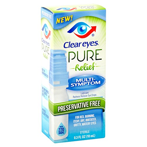 -. Feature : Clear Eyes Pure Relief / Lubricant Redness Reliever Eye Drops / Multi-Symptom - Preservative Free - For Red, Burning, Itchy, Dry, Irritated, Gritty, Watery Eyes / Net Wt. 0.3 FL OZ (10 mL) Per Package / Pack of 2 Packages Per Quantity Ordered