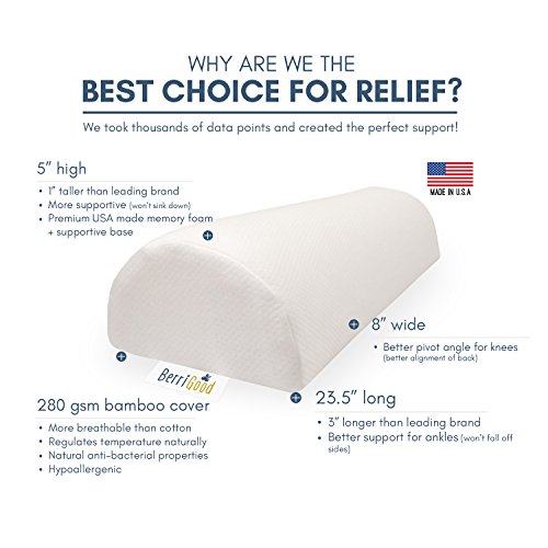 Adjustable Lumbar Back and Knee Sleep Support Pillow - Taller, Wider, with Made in USA Memory Foam